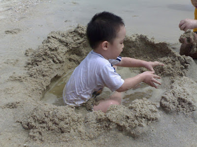 Of course he told me he dont want to go to school anymore, but I managed to bribe him, saying that I would wait for him at home tomorrow and would bring him for ice-cream. It works and he say "Didi happy liow lor..." Hahaha!